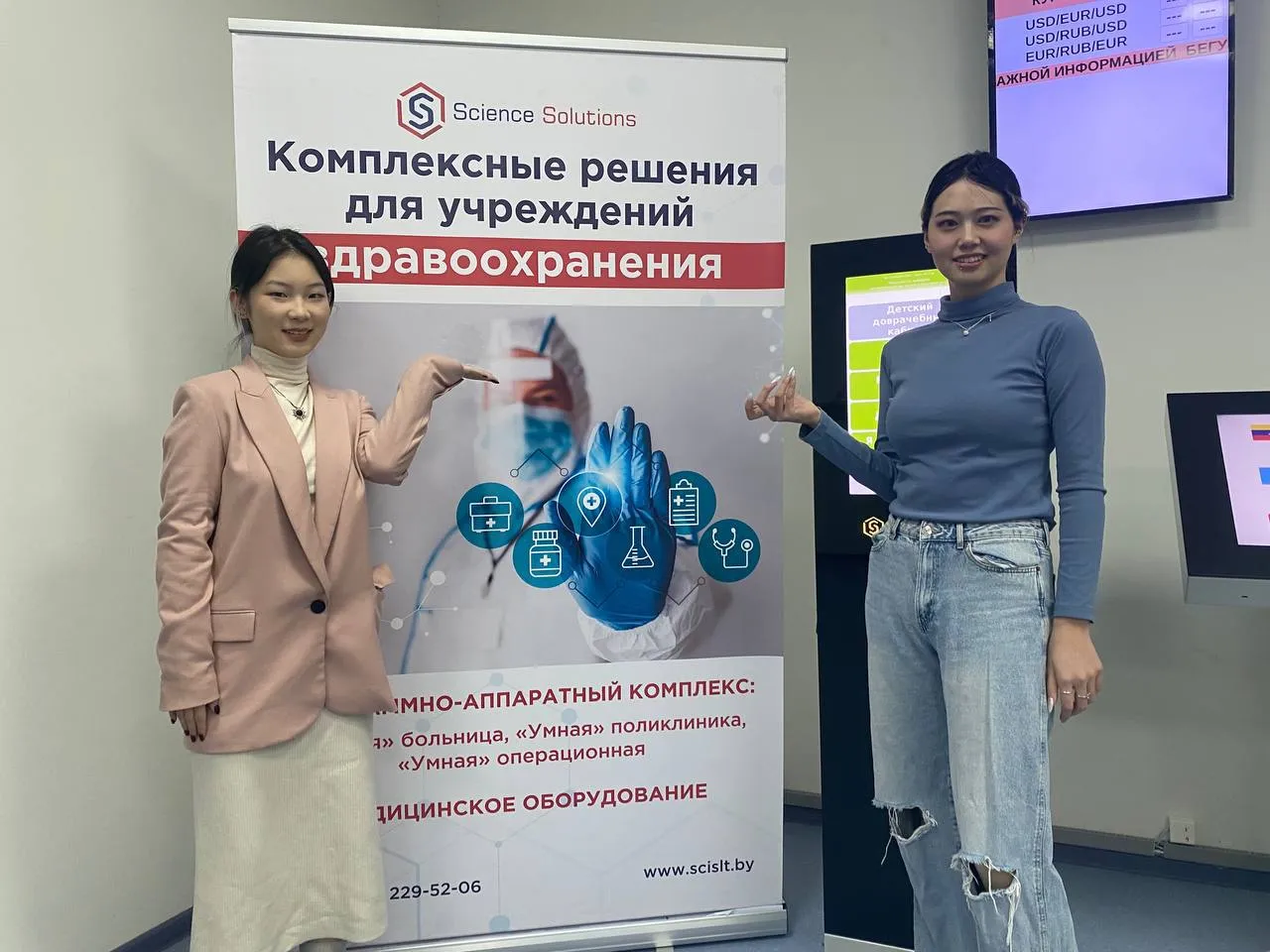 18 февраля 2025 года в рамках преддипломной практики студенты экономического факультета БГУ Ян Шувэнь и Вэнь Шиюй посетили компанию ООО «Сайнс Солюшнс», расположенную в Минском городском технопарке. Директор компании Ярослав Гребенщиков провел экскурсию, ознакомив студентов с деятельностью организации, её продукцией и инновационными процессами производства.