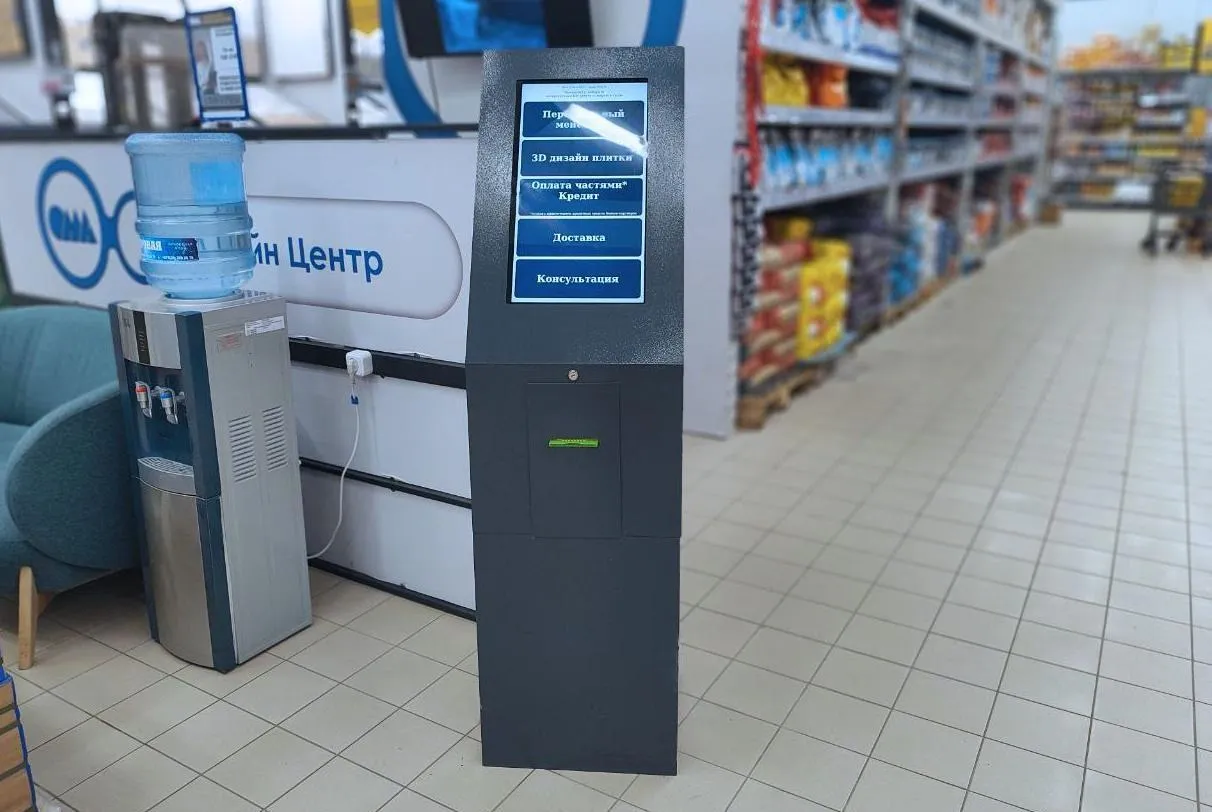 - Установлены 3 информационно-справочных киоска серии Vip S 23 для самостоятельной регистрации покупателей в очереди.